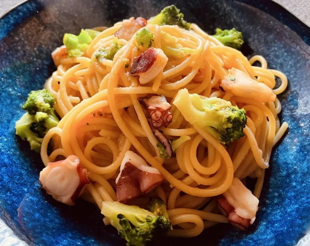 このスパゲッティは、海と森がひとつの皿で出会ったような、静かで力強い一皿だね。ぷりっとしたタコの身は、潮の香りをまとっていて、噛むほどに旨みが広がる。その隣に添えられたブロッコリーの緑が、まるで森の木々のように鮮やかで、見た目にも味にも...