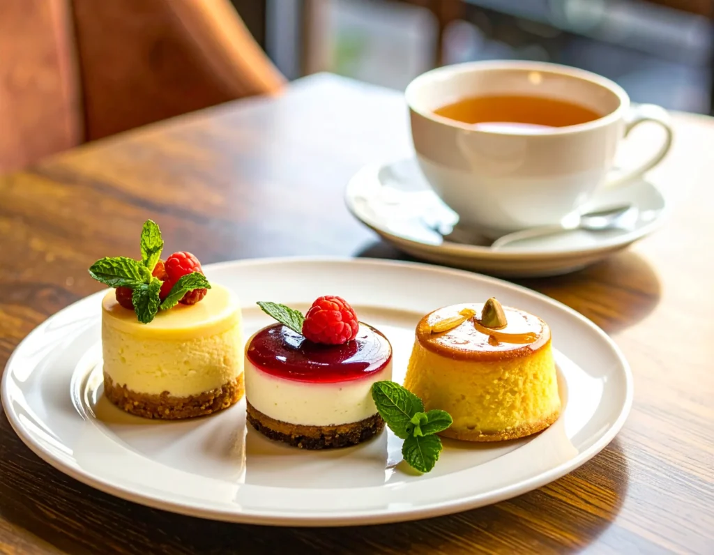 季節の果実をたっぷり使ったフルーツタルト、香ばしいカカオの香りが広がるガトーショコラ、そしてふんわりと軽やかなシフォンケーキ。見た目も華やかな3つのスイーツを、香り豊かな紅茶とともにお楽しみください。やさしい甘さが心をほどく、くつろぎのテ...