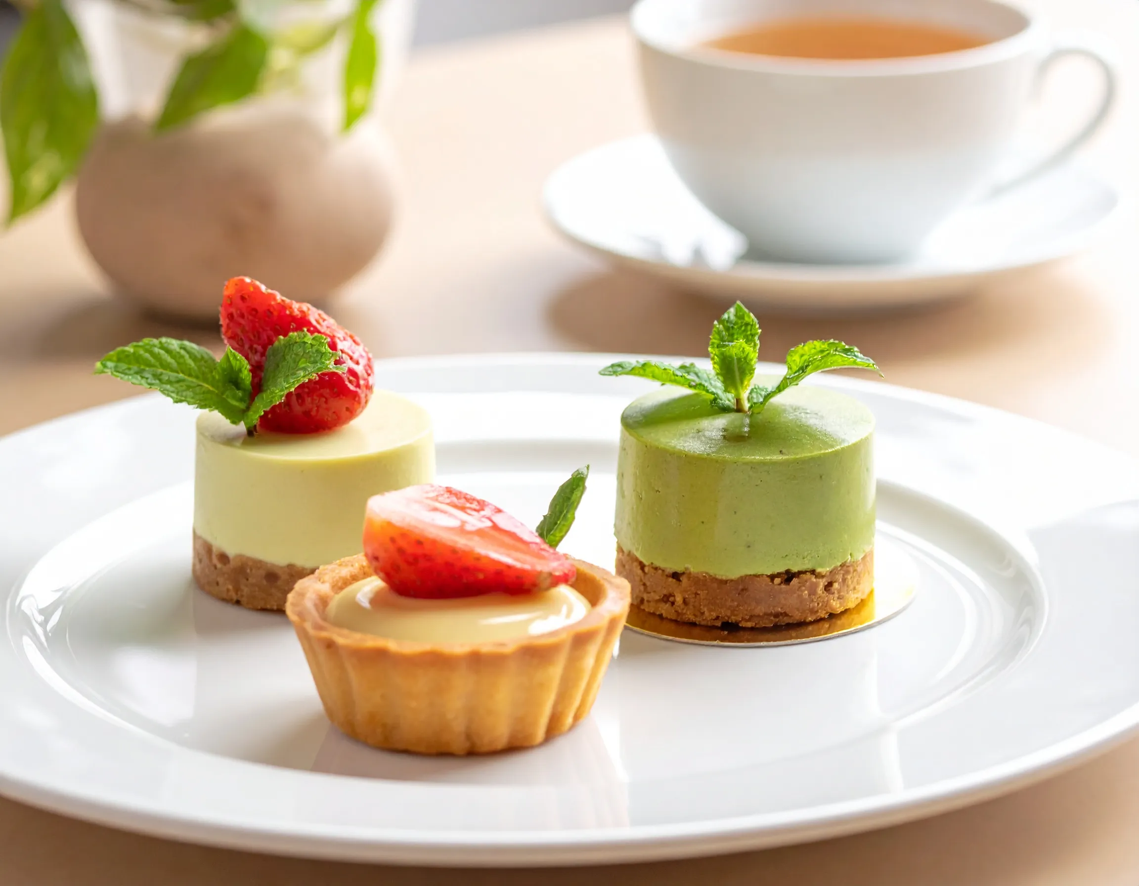 そしてフレッシュないちごの香りが広がるミニタルトを、一皿に盛り合わせました。