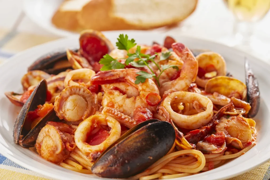 この料理は、海の恵みをたっぷりと味わえる「シーフードトマトパスタ」だね。ぷりっとした海老、やわらかなイカのリング、ふっくらとしたホタテにムール貝やアサリまで…まるで潮風を感じるような贅沢な具材が、トマトベースのソースと絡み合って、スパゲッ...
